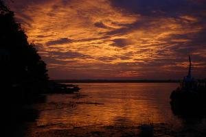 I’ve spent a very nice evening with all these people. First I went to the market to buy some food and then joined the Aussie guy Adam and the Belgian girl for a walk along the river. The sun was just setting over the confluence of the Kong and Mekong rivers and it looked spectacular! I had to run / go to fetch my camera. Unfortunately my knee was hurting a lot and I could not run with much success so it took me longer than I’d like before I was back to take some pictures. I still managed to make a few nice ones but I missed quite a few great ones too thanks to the injury. Then we sat at the rooftop restaurant, talked and played Tingling, which is a typical Cambodian card game that Adam taught the rest of us to play. You see people playing this game on the streets in Cambodia quite often.
